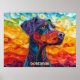 C'est un abstrait portrait de chien coloré d'un chien de race Doberman dans le style d'art de la découpe en papier. C'est une belle affiche pour les amoureux de les chiens et les propriétaires de Doberman.