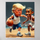 Une caricature de Donald Trump en tenue sportive jouant au basket-ball avec Barack Obama