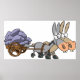 Un couple d'ânes fatigués tirant un chariot derrière eux. Ce design semble vraiment efficace sur cette affiche