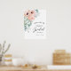 Un joli poster de bienvenue pour une fête de mariage féminin avec un bouquet d'aquarelles de coquelicots, roses, eucalyptus et verdure dans des tons pastel doux rose, beige, vert et vert-bleu. Les associations de polices tendance comprennent un script manuscrit et un élégant serif. Personnalisez le modèle de texte facile à utiliser avec le nom de la future mariée et la date de l'événement.