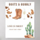 Cette conception présente des couleurs neutres modernes dans une application d'aquarelle. Design en imprimé vaches, verre de champagne, cactus du désert, bottes de cowboy.