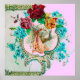 Design floral élégant, coloré, dynamique de style vintage avec un bébé et cigogne volant parmi le beau romantique rose, roses rouges, fleurs de printemps bleu turquoise par Bulgan Lumini (c).Facile à customiser avec votre propre texte et inizirés pour baby showers, fête d'anniversaire d'enfant, ou à peu près tout événement que vous souhaitez!