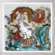 Affiche Dragon asiatique vert VS tigre blanc. Illustration