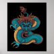 Affiche dragon chinois bleu