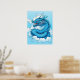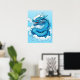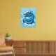 Poster dans un dragon chinois féroce, dans les tons bleu et blanc indigo, émergeant des nuages