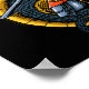 Cette conception est un féroce guerrier samouraï debout à côté d'un dragon doré. Le guerrier est habillé d'une armure traditionnelle qu'il est sur la défensive en retenant une attaque. Le dragon est enroulé autour du samouraï en or et bleu vif. L'armure de samouraïs est également colorée dans une agréable teinte d'or et de blues mêlés de rouge.