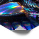 Une représentation frappante d'un dragon radieux orné d'écailles métalliques brillantes, brillantes et dressées contre un arrière - plan vif et coloré présentant une gamme de reflets spectraux éclatants.