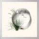 La vie sous une goutte d'eau. Cette affiche d'art imprimé présente une illustration botanique et une goutte d'eau sur un fond crème clair. La scène naturelle fantaisiste et rêveuse comprend de l'herbe, un escargot et une libellule. La goutte d'eau crée l'illusion de grossissement, mettant en valeur l'illustration botanique.