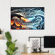 Deux dragons mythiques, incarnations du feu et de la glace, dominent cette scène épique de l'imaginaire. Le dragon de feu, ses écailles qui brillent comme de la lave fondue, s'envole à travers un ciel fumé, des flammes tourbillonnent autour. Le dragon de glace, chatoyant dans les bleus et les blancs, s'élève d'un paysage gelé, exhalant une brume glacée. L'arrière - plan est un contraste saisissant de teintes brûlantes et de textures glacées. Le texte "FIRE & ICE" est affiché en haut