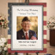 Honorez une vie de courage, de service et de sacrifice avec ce poster funéraire de célébration de la vie avec le drapeau américain. Conçu avec un fond de drapeau américain vintage intemporel, ce mémorial patriotique présente la photo personnalisée de votre proche ainsi que son nom, son grade militaire et les détails de son service. Parfait pour honorer un héros de guerre, un vétéran ou un patriote fier, ce poster d'hommage crée un point focal significatif lors des funérailles, des services commémoratifs ou des rassemblements de célébration de la vie — un rappel durable d'un héritage d'honneur et de dévotion au pays.