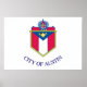 Ce design présente le drapeau de la ville d'Austin, qui est la capitale de l'État américain du Texas. Austin est le siège et la plus grande ville du comté de Travis, avec des portions s'étendant dans les comtés de Hays et Williamson. Un habitant d'Austin, au Texas, est connu comme Austinite.