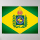 Drapeau de l'Empire du Brésil, de 1853 à 1889. L'Empire du Brésil était un Etat du 19ème siècle qui comprenait largement les territoires qui forment le Brésil moderne et (jusqu'en 1828) l'Uruguay. Son gouvernement était une monarchie constitutionnelle parlementaire représentative sous le règne des empereurs Dom Pedro I et de son fils Dom Pedro II. colonie du Royaume du Portugal, le Brésil devint le siège de l'Empire colonial portugais en 1808, lorsque le prince portugais régent, plus tard roi Dom John VI, fuit l'invasion du Portugal par Napoléon et s'établit lui-même et son gouvernement dans la ville brésilienne de Rio de Janeiro. John VI retourna plus tard au Portugal, laissant son fils aîné et héritier apparent, Pedro, gouverner le royaume du Brésil comme régent. Le 7 septembre 1822, Pedro proclama l'indépendance du Brésil et, après une guerre réussie contre le royaume de son père, fut acclamé le 12 octobre comme Pedro I, premier empereur du Brésil. Le nouveau pays était immense, peu peuplé et ethniquement diversifié.