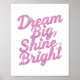 Let your ambitions sparkle with this uplifting "Dream Big, Shine Bright" quote. Written in a beautiful pink script font with a sparkly, glittery effect, this design is a dazzling reminder to pursue your dreams and let your inner light shine. It’s perfect for anyone needing a little splash of motivation and girly magic.