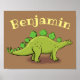 Affiche Drôle caricature de stegosaurus vert dinosaure