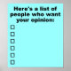 Affiche drôle de liste d'opinion
