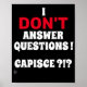 poster amusant "Je NE RÉPONDS PAS AUX QUESTIONS" tous les designs sont disponibles pour être customisés, vous pouvez mettre les designs sur t-shirts, sweat - shirts à capuche, tasses, autocollants... ou tout ce que vous pouvez penser.