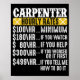 Ce drôle de charpentier de charpentier de charpentier père design montre les tarifs horaires du charpentier. Parfait pour Woodworker qui aime être dans l'atelier de charpentier avec des outils et sciure pour construire des choses à partir de la ferraille bois. La conception comporte des outils.