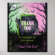 Merci à vos invités avec ce baby shower d'aquarelle rose et vert "Merci" signe de faveur! Doté d'un chaudron bouillonnant, d'un casquette sorcier, d'un balai et d'un cadre de branches d'arbres étranges, ce panneau donne le décor d'un baby shower à thème de sorcière fantaisiste. Idéal pour une fête d'octobre ou un baby shower d'Halloween avec des ambiances modernes et magiques.