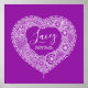 Nom d'art affiche de cœur en dentelle blanche idéale pour la chambre ou la salle de jeux d'une fille. Personnalisez avec votre propre nom et la signification de votre nom pour un toucher vraiment personnel dans la chambre ou la nurserie de votre enfant, cet exemple est pour le nom Lacey Tressé joli, chic, élégant et confiant. Impression d'affiche mignonne idéale pour un nouveau-né ou un cadeau d'anniversaire ou de baptême pour fille couleur de fond peut être modifiée si nécessaire actuellement violet. © Conception d'art encre unique par Sarah Trett. www.sarahtrett.com pour www.mylittleeden.com