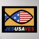 Poster du patriotique Jesus Saves. Montrez votre fierté américaine avec un t-shirt patriotique, un bouton ou un cadeau ! Idéal pour 4 juillet, ou n'importe quand pour célébrer les USA ! Acheter notre sélection complète de