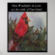 Le "roi cardinal" rouge vif est fièrement assis sur une branche avec des feuilles. Cette affiche est sous-titrée avec un rappel des dons que ce monde a à offrir, "Comme Merveilleux, Oh Seigneur, sont les oeuvres de Tes Mains" Prêt pour le cadrage.
