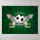 Conception d'affiches de style vintage pour l'équipe nationale brésilienne supportant un ballon de football avec des ailes, le drapeau et le chant brésiliens - Nascido para jogar futebol (Né pour jouer au football) - et les vedettes de champion sur un arrière - plan vert radial. Conception disponible sur divers produits (vêtements, casquettes, tasses, sacs, etc.) Vous pouvez personnaliser ce poster avec du texte personnalisé, modifier la mise en page, ajouter une bordure ou un cadre ou choisir une taille spécifique.