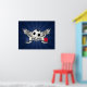 Conception d'affiche de style vintage pour l'équipe nationale de France avec un ballon de football avec ailes, le drapeau et le chant français - "Allez les Bleus" - et la vedette sur arrière - plan bleu radial. Conception disponible sur divers produits (vêtements, casquettes, tasses, sacs, etc.) Vous pouvez personnaliser ce poster avec du texte personnalisé, modifier la mise en page, ajouter une bordure ou un cadre ou choisir une taille spécifique.