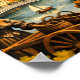 Bring the historic beauty and warm sunset tones of the Irish capital into your home with this breathtaking Dublin, Ireland travel poster. This piece of wall art uses a painterly, graphic style to showcase the iconic bridges and majestic domes of Dublin's famous skyline.