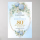 Affiche Dusty Blue Hydrangea Boho Floral 80th birthday