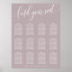 Bienvenue à vos invités avec cet élégant tableau de sièges mariage violet lavande poussiéreux. Doté d'un design minimaliste et d'un script moderne qui dit trouver votre siège, ce tableau de sièges est parfait pour un mariage élégant et sophistiqué. Les couleurs douces et la disposition soignée confèrent à vos hôtes un aspect raffiné et organisé, leur permettant de trouver facilement leur place. Customisez avec vos noms et vos arrangements de table pour créer un ajout unique et cohérent à votre décor mariage. Ce tableau de sièges peut accueillir jusqu'à 12 tables, ce qui en fait l'endroit idéal pour une célébration bien planifiée et élégante.