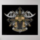 The Hobbit : The Battle of the Five Armies | This Dwarves Of Erebor shaded cartoon graphic shows Dwarven weaponry and armor forming a crest.