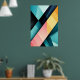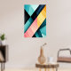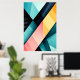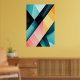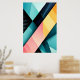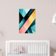 Une explosion de couleurs et de formes dans cet art géométrique moderne. Des tons vibrants de turquoise, rose et jaune se croisent en diagonales audacieuses, créant de la profondeur et de l'énergie. Idéal pour les environnements créatifs recherchant modernité et impact visuel avec un design épuré et sophistiqué.
