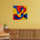 An abstract artwork that is a striking exploration of color and form, featuring sweeping, fluid curves that playfully intersect with sharp, geometric boundaries. Rendered in vivid primary hues. This piece creates a continuous sense of motion and vibrant, kinetic energy, rendered in colors of deep crimson, brilliant sunshine yellow, and cobalt blue. Perfect for modern, minimalist, or mid-century interiors, this artwork acts as a brilliant focal point that instantly brings a room to life. The interlocking ribbons of color create a mesmerizing optical depth, inviting the viewer to trace the endless, rhythmic loops of the composition. It’s an ideal choice for a living room, a creative office, or any room that needs a pop of color.