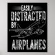 Affiche Easily Distracted By Airplanes Funny Plane Lovers