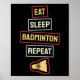 Affiche Eat Sleep Badminton Repeat Badminton Player Retro,