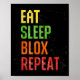 Affiche Eat Sleep Blox Repeat, Blox Gaming, Funny Blox Cos