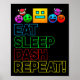 Affiche Eat Sleep Dash Répéter Video Game Géométrie Vidéo