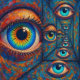 "Echoes in the Iris" - Un portrait surréaliste. Un oeil impasto stylisé et audacieux se multiplie sans cesse dans un tunnel de reflets en miroir, ses couleurs dansant entre le feu et l'eau. Chaque écho recule dans la distance, symbolisant le déplacement progressif de l'identité à travers le temps. L'oeuvre mêle intensité peintre et répétition surréaliste, explorant la beauté et l'inquiétude de l'auto-examen sans fin.