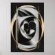 Une danse de formes géométriques entrelacées de courbes et de cercles métalliques. La fusion de lumière et d'ombre crée profondeur et mouvement, évoquant le sentiment d'un portail abstrait qui résonne avec équilibre, mystère et sophistication intemporelle.