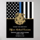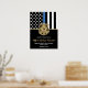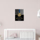 Cette conception comprend un drapeau de la police avec des rayures noires et blanches, ainsi qu'une fine bande bleue. Une excellente façon de féliciter la nouvelle académie de police diplômée. Customiser avec le nom de l'agent d'application de la loi diplômé en or. Célébrez cette étape importante dans le style!