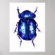 un tableau traditionnel aquarelle d'un scarabée bleu et violet, imprimé sur affiche décorative.