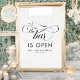 Écriture Élégante Mariage Le Bar est Ouvert Boissons Affiche. Personnalisez tous les textes et graphiques pour qu'ils correspondent parfaitement aux couleurs de votre événement.