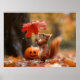 Affiche Écureuil mignon avec parapluie à feuilles - Pluie