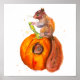 Écureuils Peints Ayant Un Snack Citrouille Affiche D'Automne