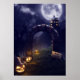 Affiche Eerie Halloween Pleine lune de nuit & Maison hanté
