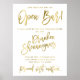 Or et blanc Notre Mariage a un panneau de réception Open Bar (affiche) avec effet feuille or (faux, imprimé comme image). Les dimensions de l'affiche sont de 18 pouces sur 24 pouces.