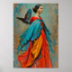 "Elaris" - Plumes de Devenir. Enveloppé dans le plumage du changement, cette figure puissante porte la transformation comme une armure. Les tons vifs rouge et bleu et les textures fluides parlent de libération à travers l'évolution. Chaque pli et chaque flotteur révèle son voyage de la forme à la liberté, de la force à la douceur, de la femme à l'aile.