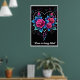 Cette affiche vibrante présente un design en forme de coeur saisissant, rempli de roses de néon brillants contre un arrière - plan noir profond. Les roses brillent dans le rose magenta brillant avec les feuilles bleu électrique, créant un contraste spectaculaire qui leur donne une qualité presque bioluminescente. Le contour du coeur est rendu en néon blanc, tandis que des formes de coeur plus petites et des tourbillons décoratifs en rose et turquoise dansent autour de la composition. Un éclair audacieux en rose et bleu bicolore ajoute un élément moderne et énergique au bas du design. De délicieux rossobudes et des fioritures entourent les principaux éléments, ce qui renforce l'atmosphère dynamique. La légende en bas dit "L'amour dans chaque pétale" dans un élégant script rétro, complétant parfaitement cette conception contemporaine de l'imagerie romantique. Toute l'esthétique allie les symboles romantiques traditionnels à une vie nocturne moderne et électrique.