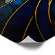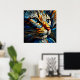 Un portrait de la tête d'un beau chat est présenté dans un style abstrait de vitrail. Les tons bleus, jaunes et turquoise se tissent dans cette composition artistique, capturant le charme du félin dans un décor fascinant et élégant.