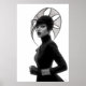 Faites une déclaration saisissante avec cette impression d'art noir et blanc captivante, véritable chef-d'oeuvre de la mode avant-gardiste et de l'expression artistique. Ce portrait frontal captivant présente une femme d'allure intense, couronnée d'un casquette noir extraordinaire et sculptural qui s'étend vers l'extérieur avec des lignes fluides et complexes et une texture de maillage subtile, créant une silhouette fascinante. Vêtue d'un élégant col à manches longues et d'élégants gants en cuir, sa tenue minimaliste offre une toile sophistiquée pour les casques spectaculaires et les bracelets en argent chatoyants. Sa peau pâle, ses lèvres noires et son regard perçant créent un contraste fascinant avec son ensemble sombre et l'arrière - plan blanc immaculé, mettant l'accent sur sa présence puissante et directe. Avec une position confiante et positionnée, cette oeuvre incarne une élégance féroce, mystérieuse et indéniablement chic. Parfait pour les espaces de vie modernes, les studios de mode ou tout décor à la recherche d'une touche de sophistication unique, d'un art audacieux et d'un récit visuel vraiment inoubliable.